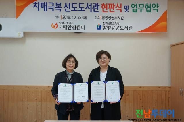 [전남투데이 서영록 기자]함평군(군수 권한대행 나윤수)은 22일 함평공공도서관(도서관장 류미현)과 업무협약을 맺고 ‘제1호 치매극복 선도 도서관’에 함평공공도서관을 지정했다.