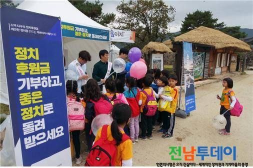 【전남투데이 구정준 기자】순천시선거관리위원회는 정치자금 후원 및 정치인의 기부행위 상시제한 홍보를 위한 캠페인을 10. 18.(금) 13:00, 낙안읍성민속문화축제를 계기로 실시했다고 밝혔다.