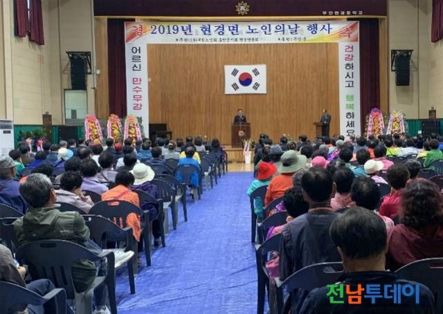 [전남투데이 서영록 기자]무안군 현경면 노인분회(회장 윤성식)가 주관한 ‘2019년 현경면 노인의 날’ 행사가 지난 21일 무안현경중학교 실내체육관에서 500여명이 참석한 가운데 성황리에 개최됐다.