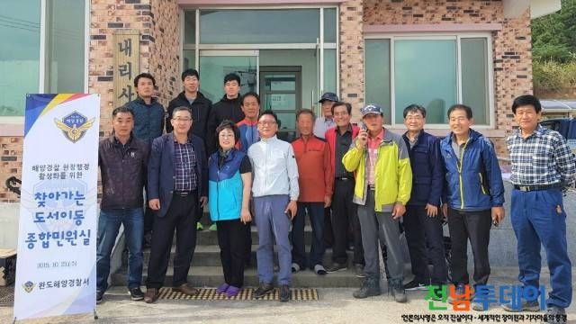 [전남투데이 김오례기자]완도해양경찰서(서장 김충관)는 오늘 23일 완도군 넙도 섬마을 주민들을 대상으로 찾아가는 도서이동 종합민원서비스를 제공했다고 밝혔다.