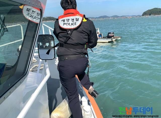 이에 땅끝파출소 연안구조정이 신속히 이동하여 남편 B씨와 함께 익수자를 끌어당겨 안전하게 구조하였다.