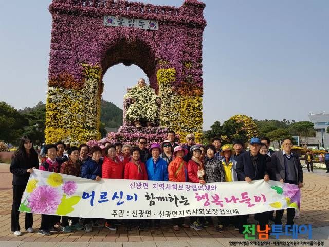 [전남투데이 서영록 기자]함평군 신광면 지역사회보장협의체(공공위원장 장경훈)는 29일 지역 노인일자리 참여자 등 30여 명과 함께 함평 국향대전을 찾아 화려한 국화로 치장한 독립문과 평화의 소녀상 등을 둘러보며 가을정취를 만끽하고 있다.
