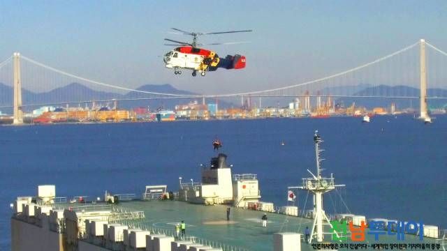 이날 훈련은 광양항에 입항한 자동차 운반선인 현대글로비스 스카이호에 긴급 환자가 발생한 상황을 가정해 실시됐다.