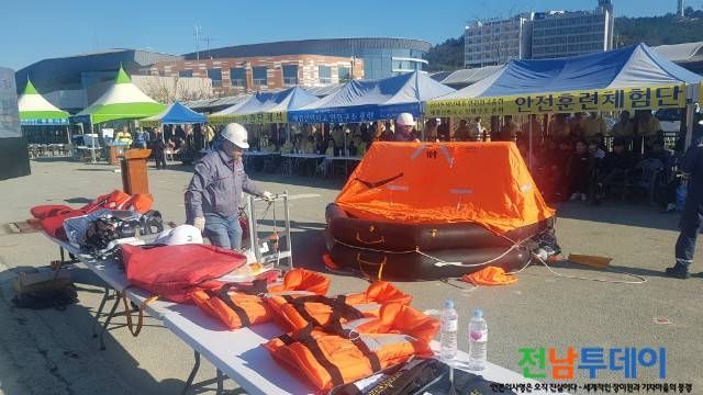 아울러 관내 유관기관, 6개 학교 학생 및 안전한국체험단, 군민 등 300여 명의 인원이 참관한 가운데 비상 시 구명정을 터트리는 방법과 익수 시 구명조끼를 부착하는 법, 익수 시 신호탄 터트리는 방법을 시연하는 해양안전교육 훈련을 실시하였다.