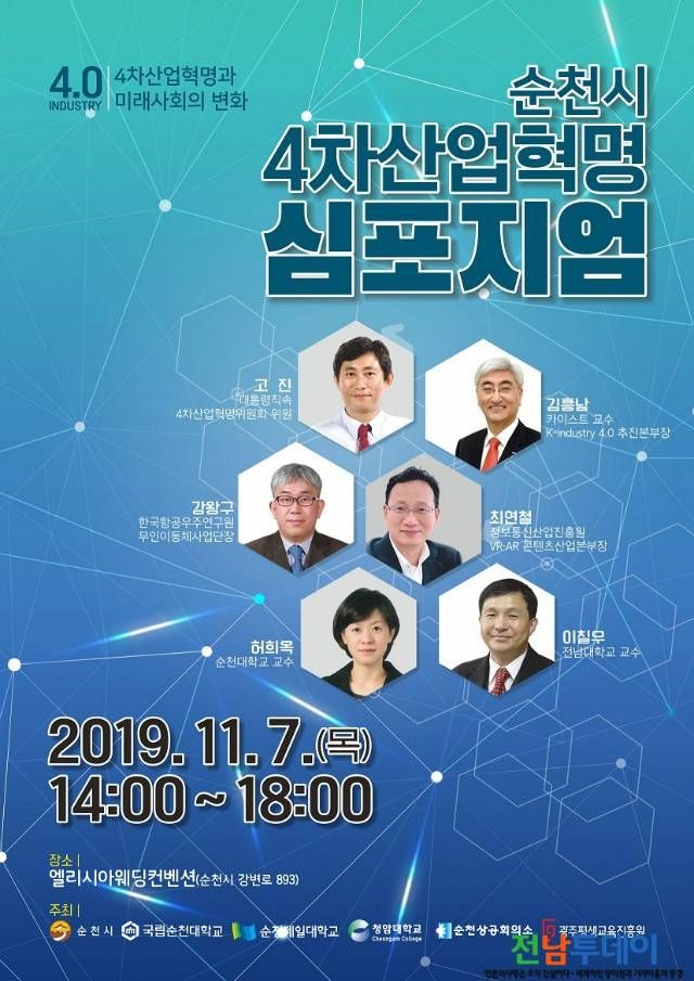 【전남투데이 구정준 기자】순천시(시장 허석)는 오는 11월 7일(목) 14시, 엘리시아컨벤션에서 ‘순천시 4차산업혁명 심포지엄’을 개최한다고 밝혔다.