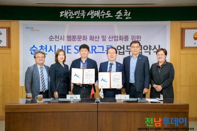 【전남투데이 구정준 기자】순천시는 지난 7일(목) 북경 IIE STAR 그룹과 만화와 웹툰 분야 상생발전을 위한 업무협약을 체결했다고 밝혔다. 업무협약식에는 허석 순천시장과 제임스 창 IIE STAR 그룹 회장을 비롯한 양 기관 관계자들이 참석했다.