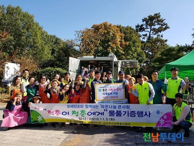 순천시 참! 좋은 사랑의 밥차는 끼니를 챙기기 어려운 독거노인 300명을 대상으로 매주 화요일 순천의료원공원에서 점심 식사를 제공하고 있으며, 보해양조 순천지점 기부금으로 밥차 식재료를 구입하여 다음 주 점심을 준비할 계획이다.