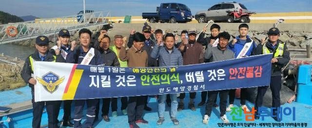 [전남투데이 김오례기자]완도해양경찰서(서장 김충관)는 지난 12일 전남 해남군 남선항에서 30명이 참여한 가운데 범국민 해양안전문화 확산을 위한 ‘해양안전의날’ 행사를 가졌다고 밝혔다.