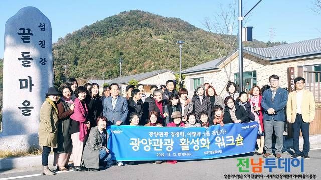 【전남투데이 구정준 기자】광양시는 지난 12일(화) 섬진강끝들마을 휴양소에서 관광과 전 직원과 광양시문화관광해설사 50여 명이 한자리에 모여 ‘광양관광 경쟁력 어떻게 키울 것인가’라는 주제로 자체 워크숍을 가졌다고 밝혔다.