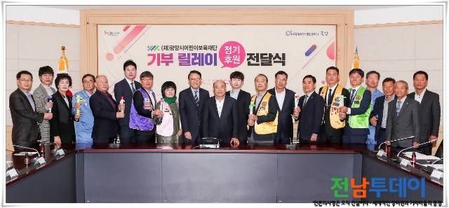【전남투데이 구정준 기자】(재)광양시 어린이보육재단(이사장 황재우)에 1계좌(3,000원) 이상 갖기 정기후원 릴레이가 많은 단체의 적극적인 동참으로 이어지고 있다.