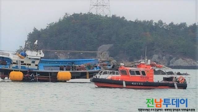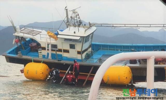 이에 완도해경은 경비정과 구조정, 해경구조대를 급파, 신고접수 9분 만에 현장에 도착, 선장 A씨를 구조하고, 입수하여 파공이 없음을 확인한 후 배의 오른쪽 부분에 지주목 3개와 리프트백 2개를 설치하였다.