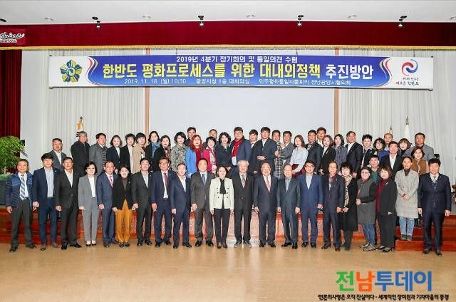 【전남투데이 구정준 기자】민주평화통일자문회의 광양시협의회(회장 김종대)는 지난 18일(월) 시청 대회의실에서 정현복 광양시장(대행기관장)을 비롯한 내빈과 자문위원 등 50여 명이 참석한 가운데 '2019년도 4분기 정기회의'를 개최했다고 밝혔다.