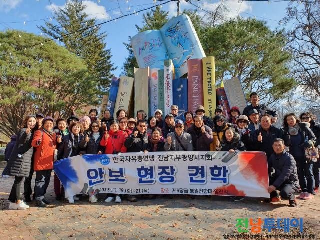【전남투데이 구정준 기자】 한국자유총연맹 광양시지회(회장 소완석)는 지난 19~21일, 2박3일 일정으로 지회임원 및 회원과 시민 40여명이 임진각 일원 및 강화 평화 전망대와 제3땅굴 등 안보 견학 활동을 성황리에 마쳤다.