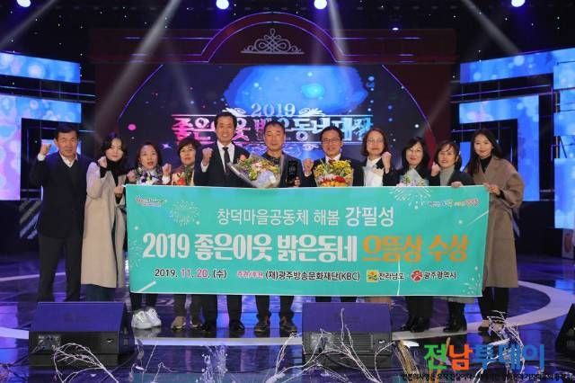 【전남투데이 구정준 기자】광양시는 지난 20일(수) ‘2019년 좋은이웃 밝은동네’ 시상식에서 광양시 광양읍 창덕마을공동체 해봄 대표 강필성 씨가 좋은이웃 으뜸상을 수상했다고 밝혔다.