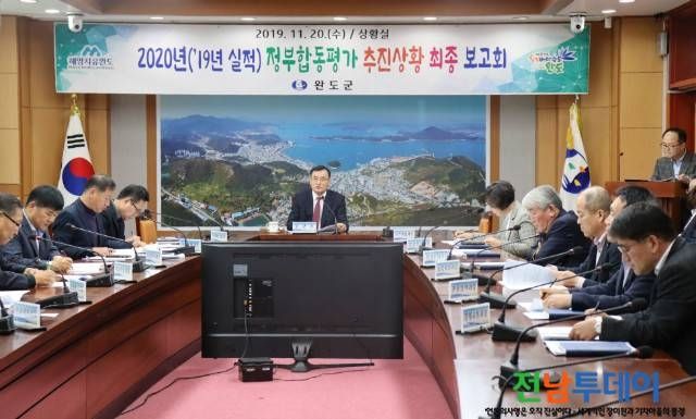 [전남투데이 김오례기자]완도군은 지난 20일 군청 상황실에서 정석호 부군수 주재로 11개 부서의 부서장 및 지표 담당 팀장이 참석한 가운데 2020년(‘19년 실적) 정부합동평가 대비 추진상황 최종 보고회를 개최했다.