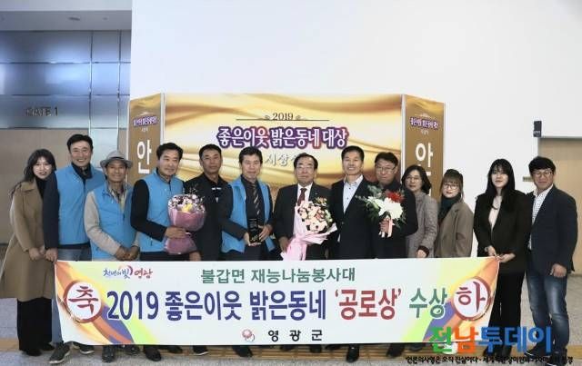 영광군(군수 김준성)은 ‘2019년 좋은이웃 밝은동네 시상식’에서 불갑면 재능나눔 봉사대가 공로상을 수상했다고 밝혔다.