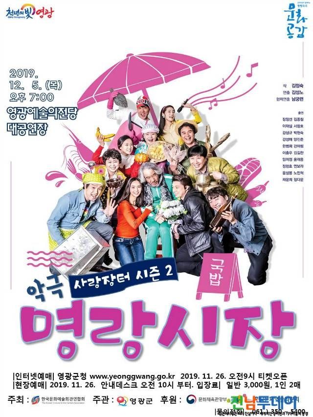김준성 영광군수는 오는 12월 5일(목) 오후 7시에 영광예술의전당 대공연장에서 2019 문예회관과 함께하는 방방곡곡 문화공감 공모사업에 선정된 악극 ‘명랑시장’을 공연한다.
