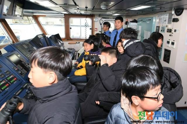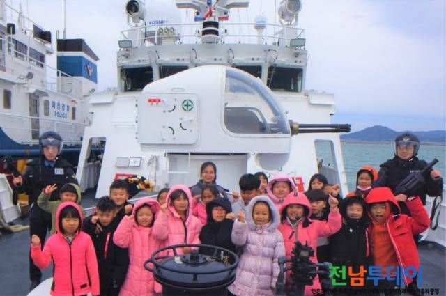[전남투데이 김오례기자]완도해양경찰서(서장 김충관)는 지난 25일 전용부두에서 화흥초등학교 전교생 46명이 참여한 가운데 최신예 태극 19호(519함)에서 함정공개 행사를 가졌다고 밝혔다.