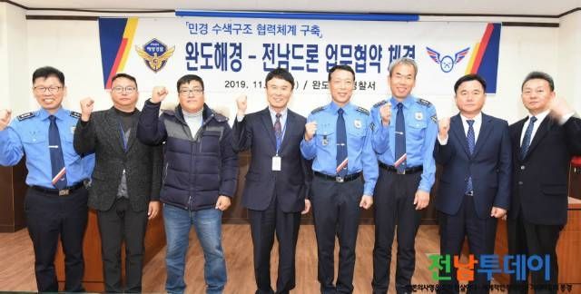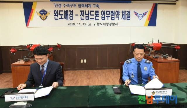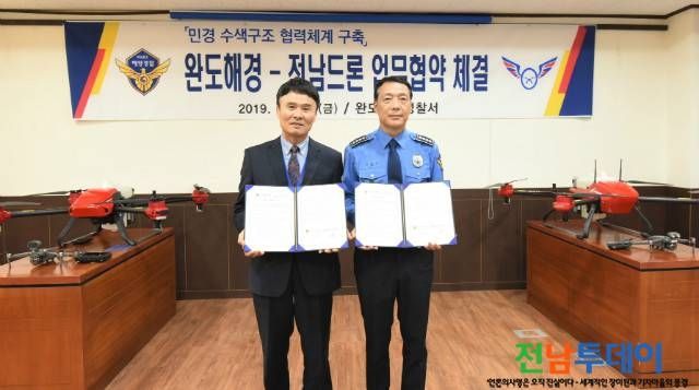 [전남투데이 김오례기자]완도해양경찰서(서장 김충관)는 오늘 29일 전남드론교육원과 민ㆍ경 수색구조 협력체계 구축을 위한 업무협약을 체결하였다고 밝혔다.
