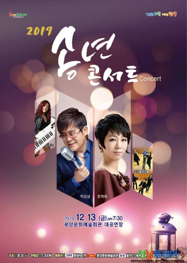 【전남투데이 구정준 기자】광양시는 오는 12월 13일(금) 저녁 7시 30분 광양문화예술회관 대공연장에서 한해의 끝자락에 다사다난했던 2019년을 되돌아보며 지나온 시간의 아쉬움을 달래보는 ‘2019 송년 콘서트’를 개최한다고 밝혔다.