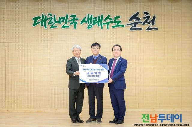 【전남투데이 구정준 기자】순천시 서면 산업단지에 소재한 DSR제강(주)(대표 홍하종)에서 지난 2일(월) 연말을 맞아 어려운 이웃 지원을 위한 ‘이웃돕기 성금 1억원’을 순천시에 전달했다.