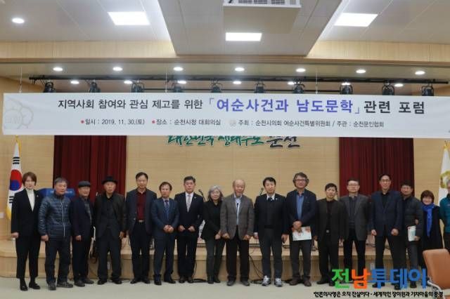 이번 포럼은 순천시의회 여순사건특별위원회가 주최하고, 순천문인협회 주관으로 실시됐으며, 문인협회, 여순항쟁유족회, 시민, 시의원 등 100여명이 참석했다.