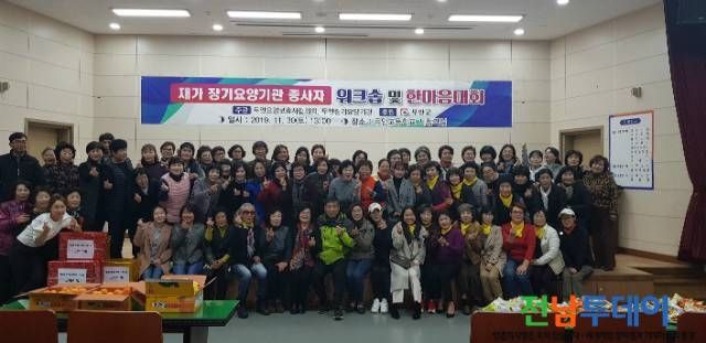 [전남투데이 서영록 기자]무안군(군수 김산)은 지난달 30일 무안고등학교 시청각실에서 관내 장기요양기관 39개소 250여명의 종사자가 참여한 가운데 노인 돌봄서비스 질 향상을 위한 ‘2019년 장기 요양기관 종사자 워크숍 및 한마음대회’를 개최하였다.