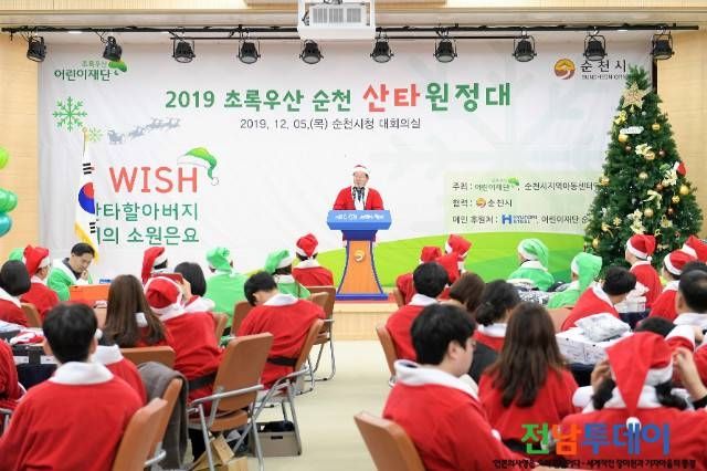 【전남투데이 구정준 기자】순천시와 초록우산어린이재단 전남지역본부는 12월 5일(목) 순천시청 대회의실에서 지역아동센터 아동들에게 크리스마스 선물을 보내줄 ‘2019 초록우산 순천 산타원정대 출범식’행사를 개최했다.