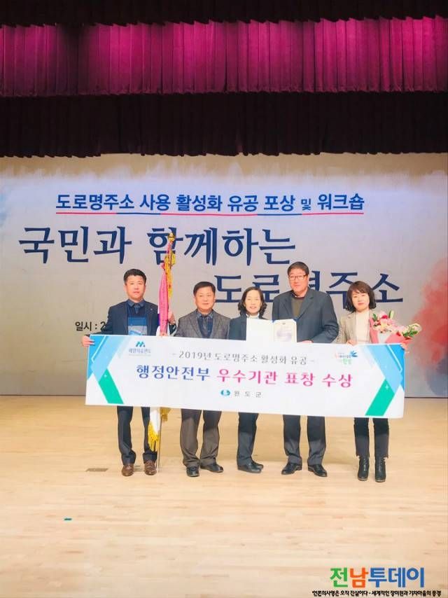 [전남투데이 김오례기자]완도군(군수 신우철)이 행정안전부에서 주관하는 ‘2019 도로명주소 활성화 유공 우수기관’으로 선정돼 기관 표창을 받는 쾌거를 이뤘다.
