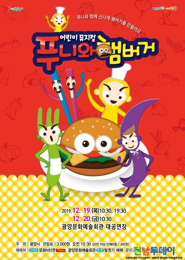 【전남투데이 구정준 기자】광양시는 오는 19일(목)부터 이틀간 광양문화예술회관 대공연장에서 어린이 뮤지컬 ‘푸니와 햄버거’ 공연을 개최한다고 밝혔다.