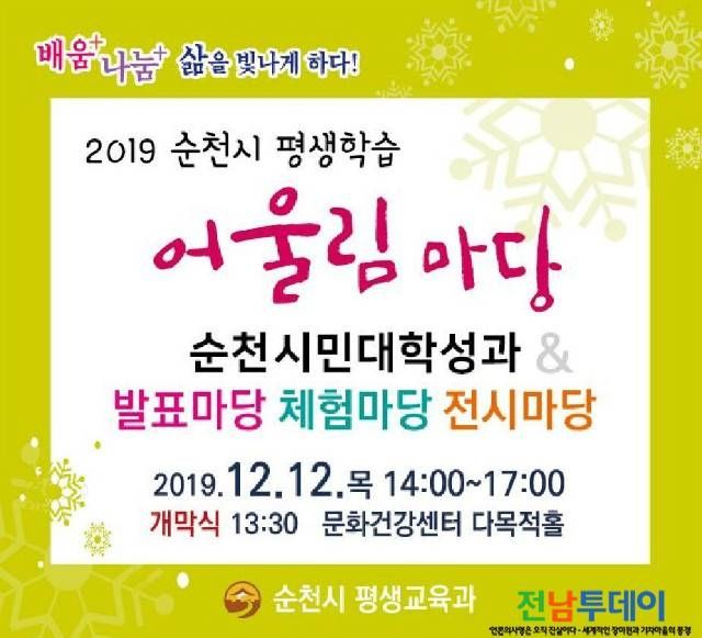 【전남투데이 구정준 기자】순천시에서는 12월 12일(목) 문화건강센터 다목적홀에서 ‘2019 순천시 평생학습 어울림마당’을 개최한다.