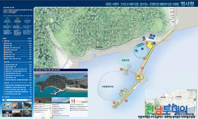 신지 명사항은 해양치유산업과 연계하여 ‘국민, 어민 그리고 바다를 살리는 해양치유어항’을 테마로 101억 원을 들여 방파제 보강 및 연장, 선박 계류시설, 에코디자인 어항, 해양쓰레기 리사이클 예술화 공간, 주민치유센터 등을 조성한다.