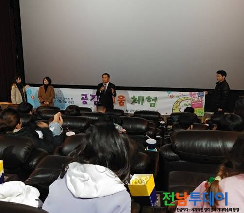 【전남투데이 구정준 기자】전라남도순천교육지원청(교육장 이길훈)은 12월 12일(목) 관내 유・초・중・고 특수교육대상학생 가족 80명을 대상으로 「마음을 더하여 행복을 나누는 가족체험 나들이」이라는 주제로 영화를 관람할 수 있는 체험을 실시하였다.