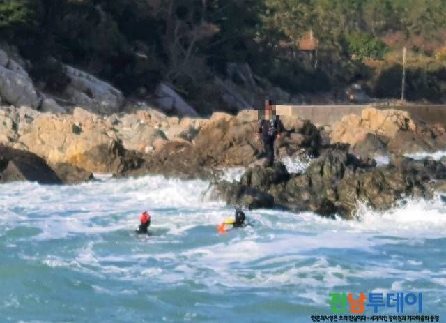 이에 완도해경은 연안구조정과 경비정 급파, 신고접수 36분만에 현장에 도착, 노화 거점파출소 구조대원 경사 김종훈 등 2명이 맨몸으로 입수 후 갯바위에 올라가 오후 12시 56분에 안전하게 고립자를 구조하였다.