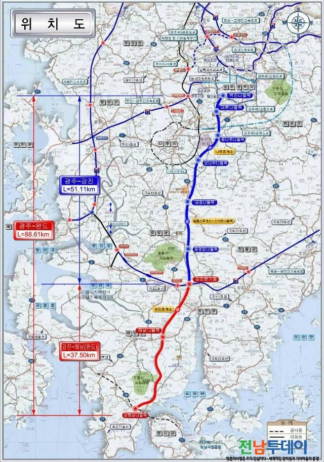 광주~완도 간 고속도로 사업은 총 연장 88.61Km, 4차선 고속도로를 건설하기 위해 약 2조 6천억 원이 소요되는 국책 사업이다.