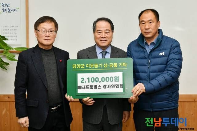 담양군에 따르면, 메타프로방스 상가연합회(회장 한명석)에서 210만원, 원불교 담양교당 교도 일동이 100만원, (사)대한노인회 담양군지회 박종대 회장이 200만원의 성금을 기탁했다.