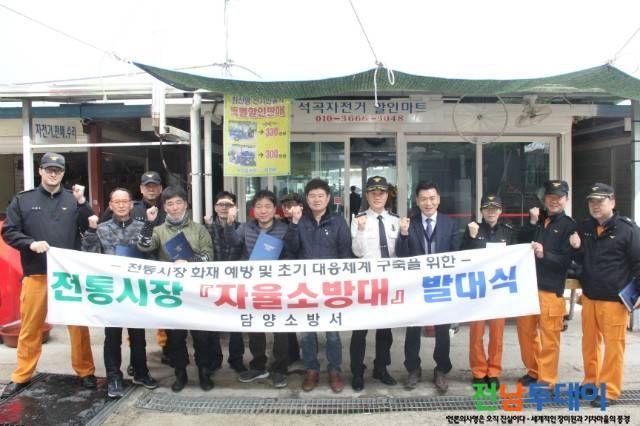 31일, 전남 담양소방서가 곡성군 석곡면 전통시장에서 효율적인 화재 예방과 화재 발생 시 신속한 초기대응을 위한 ‘전통시장 자율소방대’ 발대식을 실시했다.