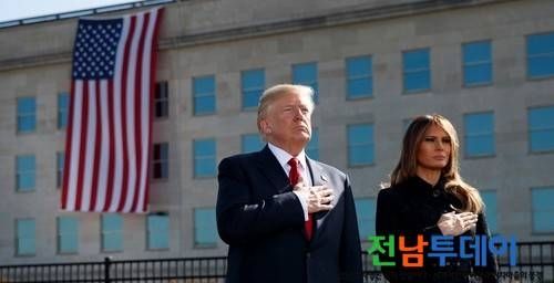 9.11테러 16주기(2017)년 기념식에서 트럼프 대통령 부부">
