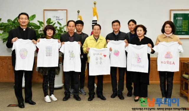 담양군(군수 최형식)은 21일 봉사와 나눔으로 남수단 어린이를 위해 참사랑을 실천한 고(故)이태석 신부의 나눔 정신을 확산하고자 21일 1004장의 희망티셔츠 전달식을 열었다.