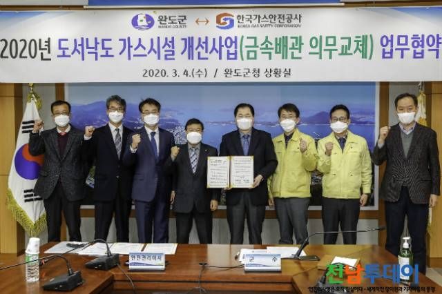 [전남투데이 김오례기자]완도군과 한국가스안전공사는 지난 4일, 군청 상황실에서 도서지역 외딴섬LP가스 노후시설 및 부적합 시설 개선과 안전장치(타이머 콕) 보급을 위한 업무협약을 체결했다.