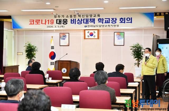 담양군(군수 최형식)이 지난 5일 담양교육지원청 대회의실에서 진행한 관내 초·중·고 학교장을 대상으로 코로나19 대응 비상대책 학교장 회의에 참석해 협조체계를 구축했다.