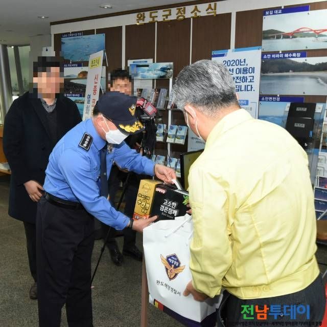 [전남투데이 김오례기자]완도해양경찰서(서장 박제수)는 완도 지역사회 내 코로나19 확산 방지를 위해 비상근무에 임하고 있는 완도군 비상근무자와 관계자를 찾아가 위문했다고 11일 밝혔다.