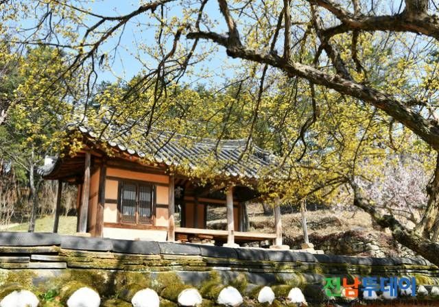 한국의 민간 전통정원 중 으뜸이라는 평가를 받는 담양 소쇄원에 산수유가 만발해 상춘객의 발길을 사로잡고 있다.