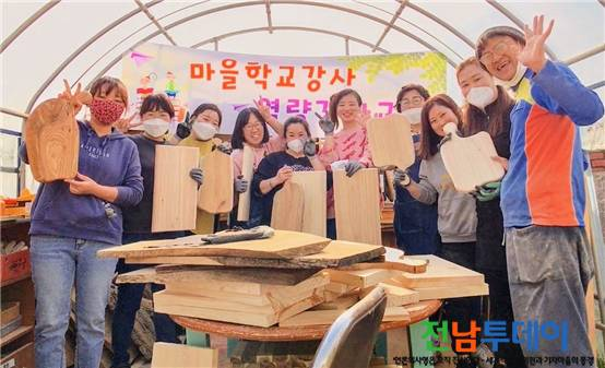 [전남투데이 김오례기자]완도교육지원청(교육장 김명식)의 중심마을학교인 햇살마루 마을학교는 지난 13일 신지초등학교 목공소에서 2020년 첫 프로그램인 목공 DIY ‘나무 도마 만들기’를 진행하였다.