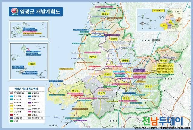 이번에 제작된 영광군 개발계획도는 영광군에서 추진 중이거나 확정된 주요사업 중 군민의 생활에 영향을 미치는 95개 사업에 대하여 부서별로 색표기를 달리하여 지도상에 표기하고 파일형태로 제작되어 사용자의 휴대성과 편의성을 높인 것이 특징으로 개발계획도는 영광군에 투자계획이 있거나 관심이 있는 사업자, 민간인 등을 대상으로 제공할 계획이며 영광군청 홈페이지(열린군정→일반행정)를 통해 누구든지 PDF자료를 내려받거나 영광군청 기획예산실을 방문하면 제공받을 수 있다.