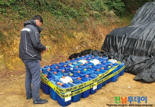 [전남투데이 김오례기자]완도해양경찰서(서장 박제수)는 지난 31일 완도군 A섬에서 불법 무기산 50통(약 1000리터, 1통당 20리터)을 보관한 관리자 적발했다고 밝혔다.