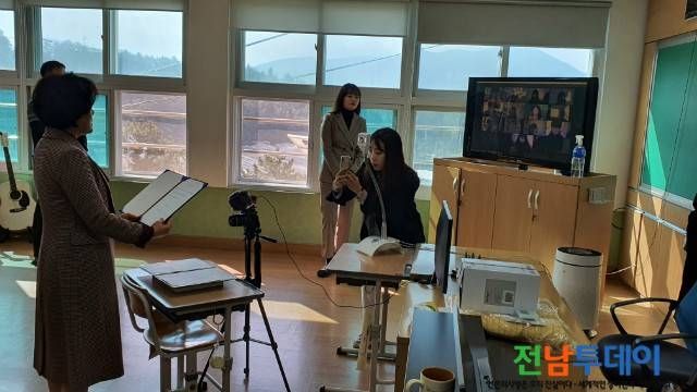 [전남투데이 김오례기자]전남 완도군 넙도초등학교노화중학교넙도분교장은 지난 16일 2020학년도 신입생 및 학부모들을 대상으로 온라인 입학식을 진행했다.