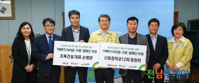 초록우산 어린이재단 박수봉 전남지역본부장은 “큰 성금을 지원해주신 ㈜초록건설과 구례산동중학교 제12회 동창회원 여러분께 깊이 감사드린다”며“취약계층 아동들이 따뜻한 보금자리를 만드는데 최선을 다하겠다”고 밝혔다.