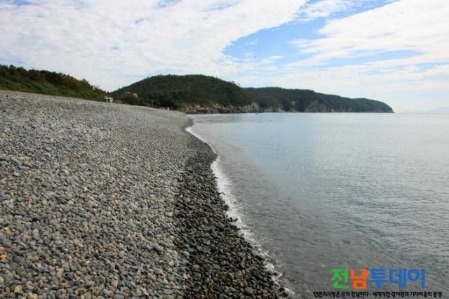 해변의 길이는 800m, 폭 200m로 후원에는 참나무, 떡갈나무, 동백나무 등 40여종의 상록수림이 잘 보존되어 있어 휴양 장소로 으뜸이다.