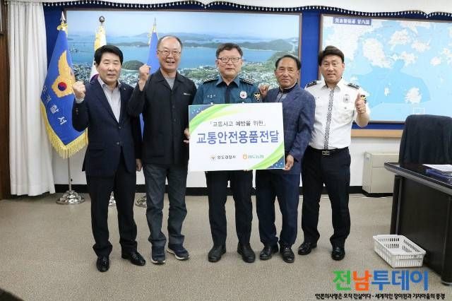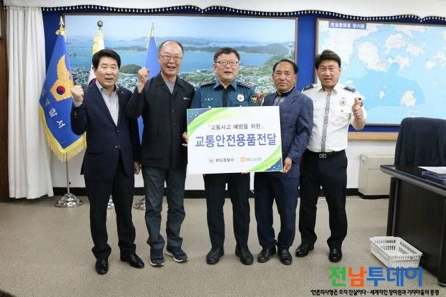 [전남투데이 김오례기자]완도경찰서(서장 김범상)는 서장 집무실에서 서장, 완도농협조합장 등이 참석한 가운데 교통사고 예방을 위한 교통안전용품(반사지, 태양열 경광등) 전달식을 가졌다.